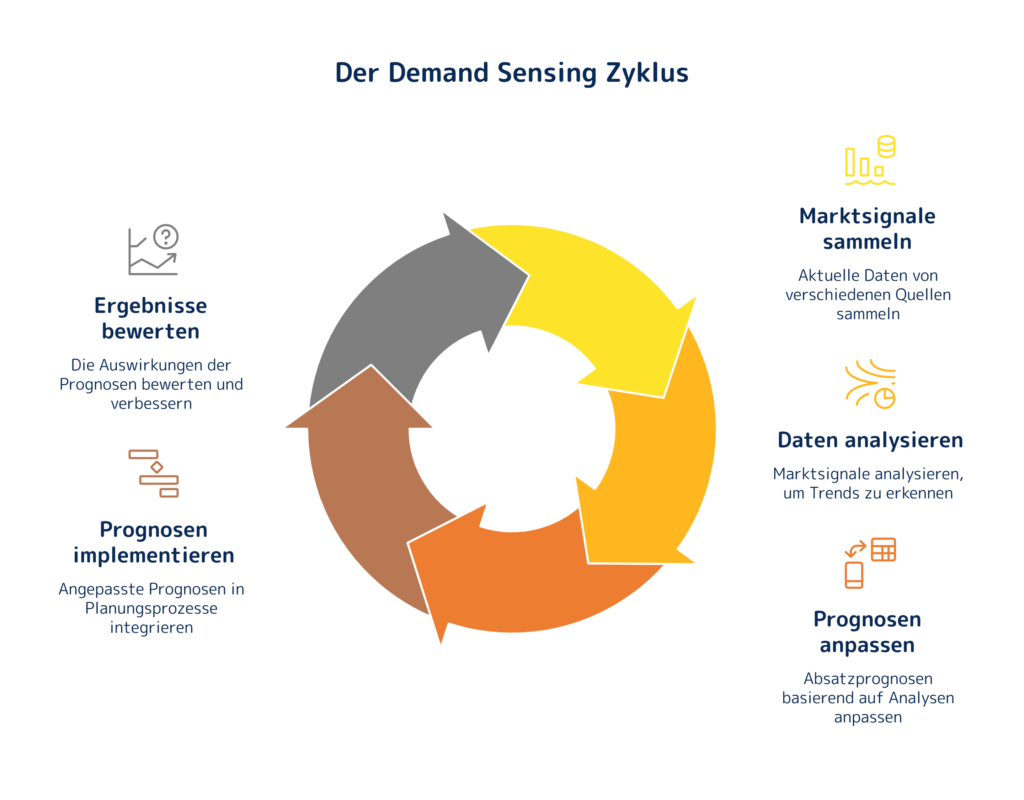 Demand Sensing bezeichnet die kurzfristige, datenbasierte Anpassung von Absatzprognosen auf Basis sehr aktueller Marktsignale. Während klassische Forecast-Verfahren wie exponentielle Glättung oder ARIMA vor allem auf historischen Zeitreihen beruhen, integriert Demand Sensing zusätzlich tagesaktuelle Informationen – etwa Auftragseingänge, POS-Daten, Abverkaufszahlen, Promotionshinweise sowie Markt- oder Wetterdaten.