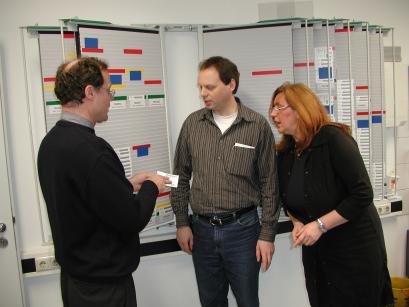 At Montblanc, the main lever for improving delivery readiness while simultaneously reducing inventories was the establishment of just-in-time final assembly and thus the shifting of inventories from the variant-rich end device to the variant-forming component level. The analysis of throughput and set-up times had shown that JIT production was possible without major costs. However, setting up JIT production requires a reliable supply of components and purchased parts for final assembly. For this reason, a central Kanban warehouse was set up before final assembly, which is served via several Kanban control loops from the upstream production stages. Suppliers are currently also gradually being integrated into the system. Thanks to the precise planning of the Ampel-Kanban system and the intensive and thorough preparatory work, the live switchover “took place without any major problems. All the preparations for the changeover were completed within just three days,” says a satisfied Peter Kluge, Head of Production Technology at Montblanc-Simplo and project manager for the Kanban project. For the first phase of the Kanban introduction, the SAP processes were redesigned so that they did not hinder the processes of the Kanban system with additional administrative work. The employees only opened a production order at the beginning of the production of a batch size and reported it back after completion. In the second phase, the Kanban system was linked more closely with the SAP system. SAP’s own Kanban control system was introduced for this purpose. Orders are now opened and closed automatically by scanning the barcodes on the Kanban cards.