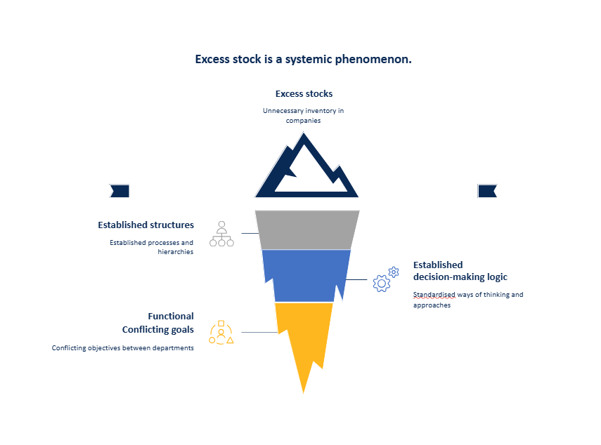 Excess inventory does not arise by chance, but as a systemic result of established structures, planning logic and functional conflicts of interest. It compensates for uncertainties and inefficiencies in the overall system and therefore often remains unnoticed.
